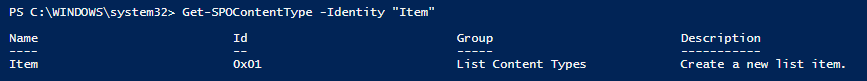 - Add-SPOContentType -Name "PnPContentType" -Description "PnP Content Type" -Group "PnPContentTypeGroup"