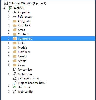 Now, go to Controller and expand the controller. Now, we can see “ValuesController.cs”. It is the main class for Web API. This controller is created by default. If we need a new controller or one with a different name, we can create that in the following way.