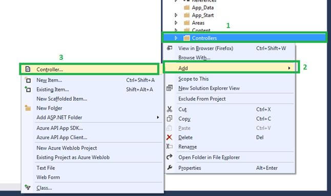 Select and right click Controllers >>Add >> Controller, just like the below screen.