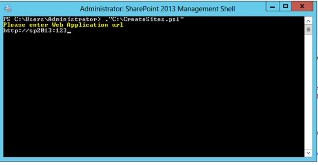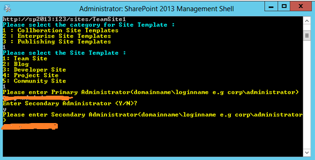 - Then it will ask if another Site collection or sub site to be created. Enter “y” if user wants another site collection or sub site to be created. Otherwise, enter “n”.