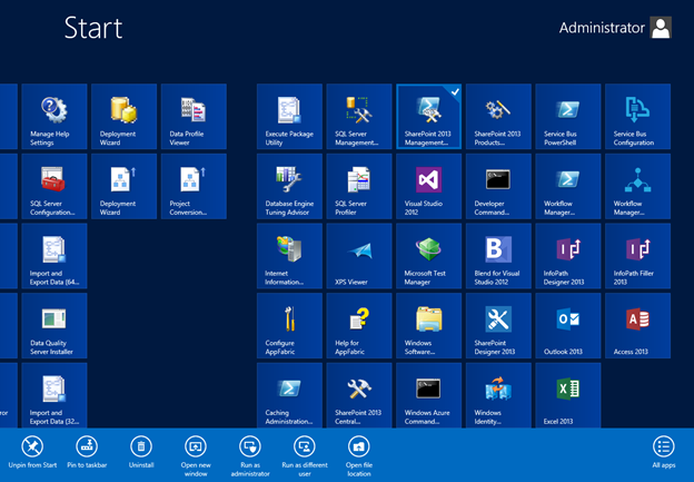 - Go to Start > Open SharePoint 2013 Management Shell.