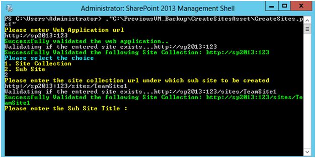 - Enter “y”. It will ask for Sub Site details. Enter these details.