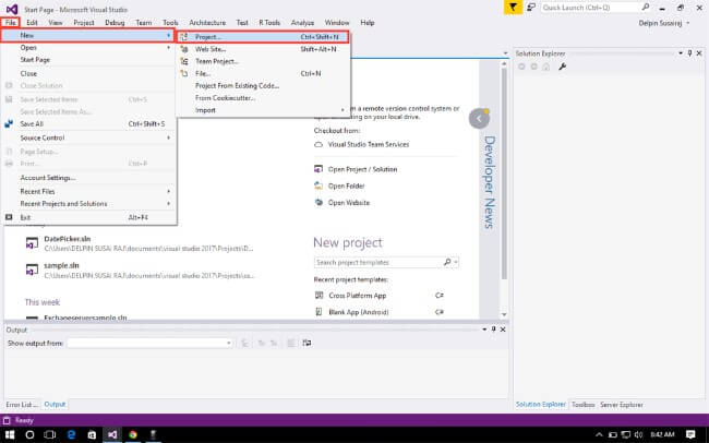 Click File--> select New--> select Project. The project needs to be clicked after opening all the types of the projects in Visual Studio or click (Ctrl+Shift+N).