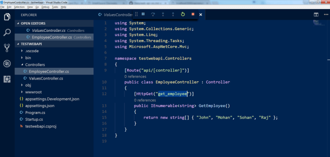 Press F5 for building and running the application. Now, open the browser and type the following URL.