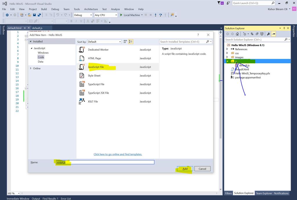 We will add a separate JavaScript file. Let’s add a script.js file and add reference in