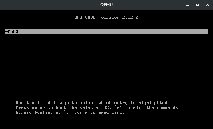 - qemu-system-x86_64 -cdrom MyOS.iso