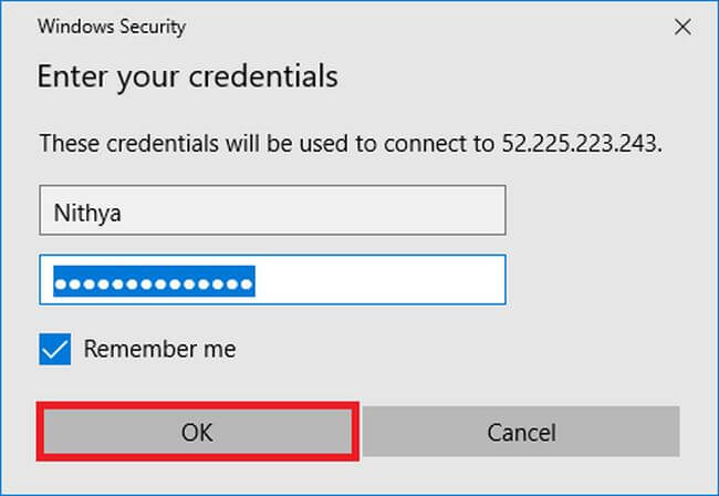 Then use the user name and the password that we used in the creation of the VM to ensure the authorized person is accessing the VM.And press OK to login into our VM.