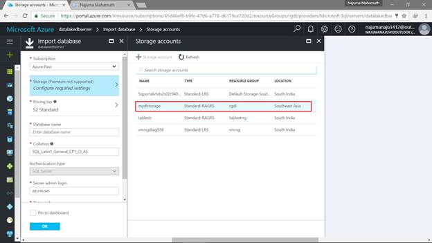 Select the storage of account, where the database is located. Here, it is “mydlstorage” under “rgdl” resource group.
