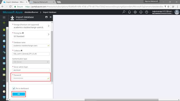 Again, you can find the status of the database getting imported under the notification pane of Microsoft Azure portal as the database import is in progress.