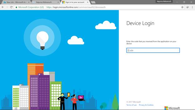 You will be getting a URL and a code, as shown in the image given above, open a Web Browser, paste the URL and authenticate with the help of the code, as shown below.