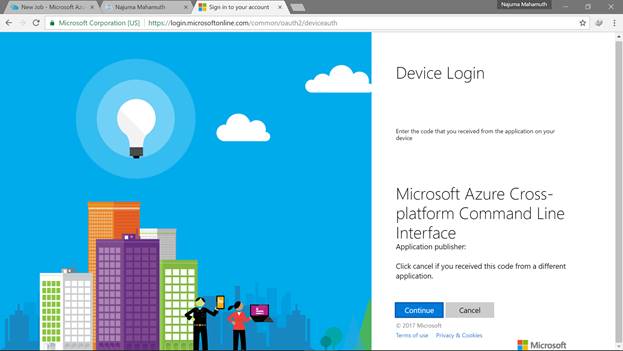 Click "Continue" in order to access Microsoft Azure Cross-Platform Command Line interface.