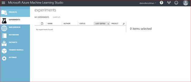 My experiments will list out the experiments, which we have on our Machine Learning Studio.
