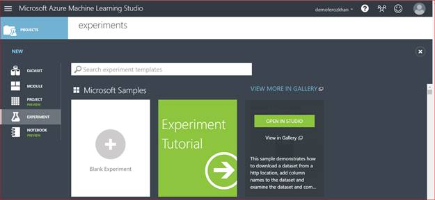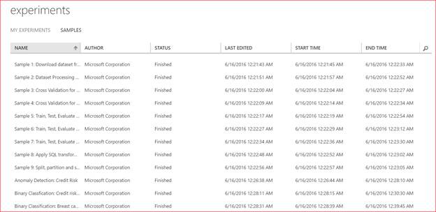Samples in Machine Learning Studio will help us to go with sample Machine Learning experiments.