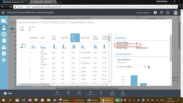 We still have missing values available for the number of doors as 2. To remove this, we will be using Cleaning Missing Data Model.