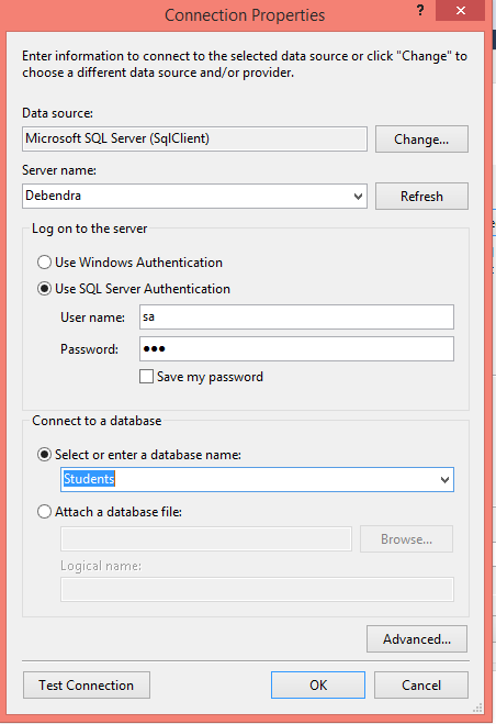 Now, Add the following ADO.NET Entity Data Model and add the following code to connect it to the database.