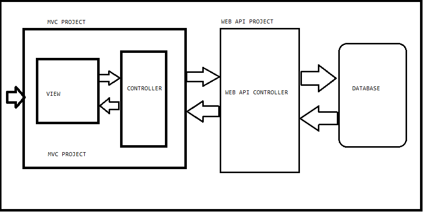 So, here, I will work with two projects, as you see in the diagram. The first is my WebAPI project where I will create various WEBAPIs according to my requirement. Here, I will create 4 APIs for my Crud operation. After that, I will host my WEB API project on local IIS.