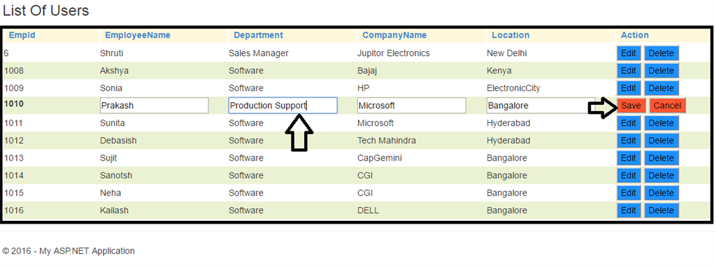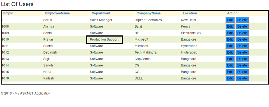 So, this way, we can do CRUD operation in WebGrid by consuming the API.