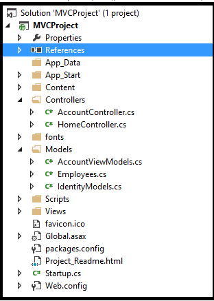 So, add a new MVC Project. Here is my solution Explorer with a model added.