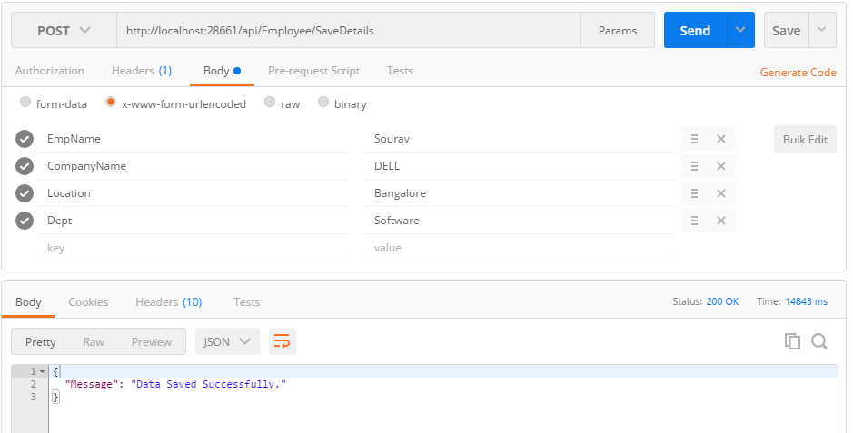 After that, use the Postman Client to test WEB APIs. First of all, we will check the first API for saving the data.
