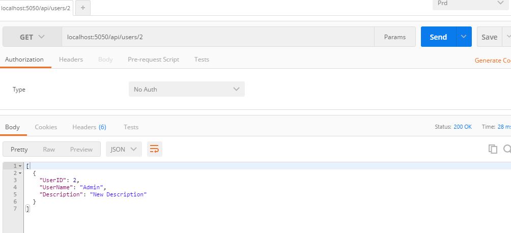 The code simply gets user on the basis of userid. Output can be seen below.