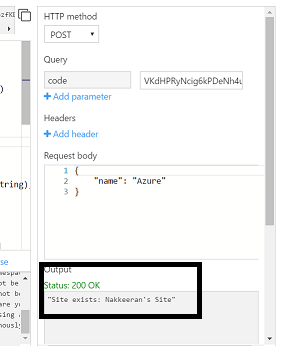The same can be tested from the Browser by using function app URL or through any AJAX REST calls.