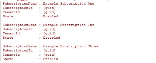 The cmdlet given above returns the list of the available subscriptions associated with your account.