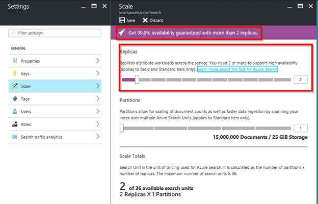 - How to scale-up the replicas and partitions to increase the availability of the Search Service.