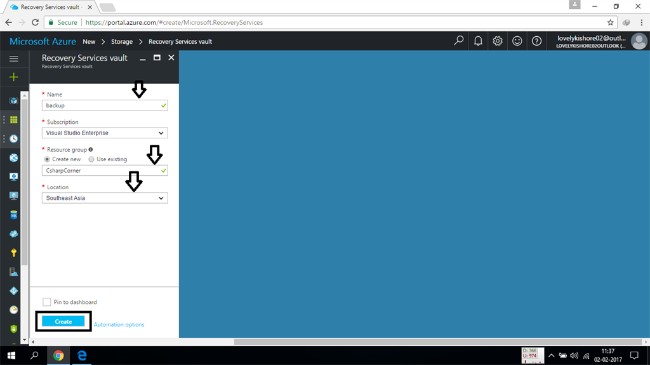 Once you finish creating the VM, go for the process of creating the recovery vault for your VM. Let us see this in detail.