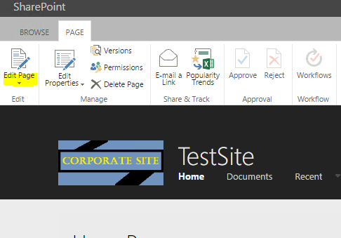 Now, click "Edit Page" to edit the newly created WebPart page.