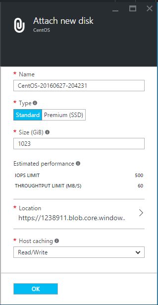 Afterwards, give the Name, Size and Type of the Disk- you needed to add and click OK.