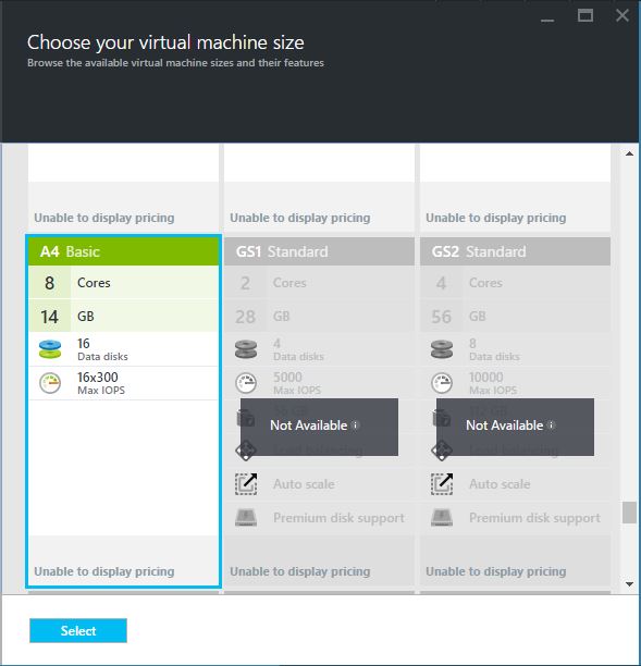 Here, I am choosing A4Standard, that has 8 core, 14 GB RAM, 2 Data Disk, and load balancing technique.