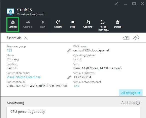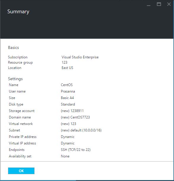 Finally, it takes some time on Azure Management Portal in the background with Cent OS and the configuration process starts.