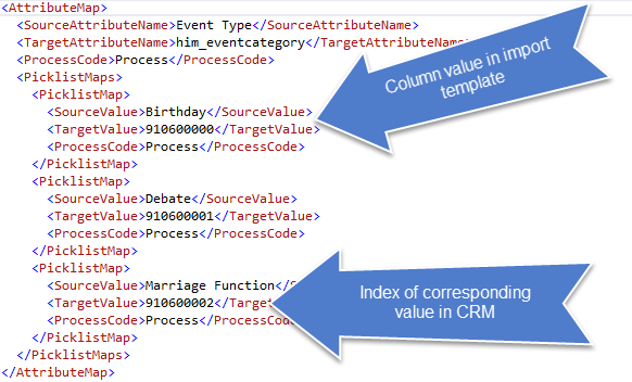 If our import file has some option which is not available in CRM, it will be added to that option set as a new value during the import by CRM. Finally, we can include all attribute maps using the following schema and can import to CRM by selecting import options under data map: