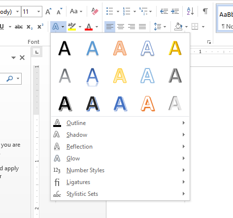 Actually, it is a form having BorderStyle: None, and which can be shown consisting of as many controls as needed for specific operations. Nowdays, all the popular software uses DropDownControl to improve their software quality. Take a look at the Paint application in Windows. Click on the File option. It drops the list of controls, like New,Open,Save,Print etc. Alternatively, open Microsoft Word. See the following image that shows text effects in DropDownControl.