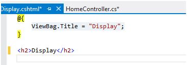 It accepts Home controller and Index Action. But we have Display ActionResult in our code so we will modify our Url to.