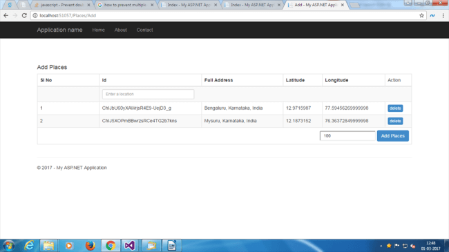 Create two files “Add.cshtml” and “Index.cshtml” into Into Views>Places folder (Create Places folder, if it does not exist).