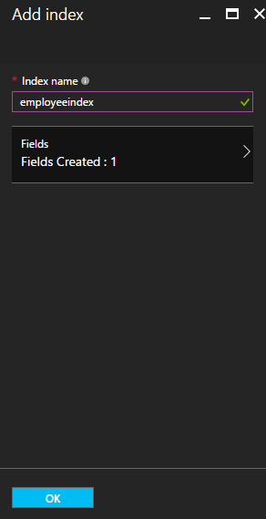 Once you review your data, click OK button. You will be taken back to the "Add Index" blade, as shown below, with the number of fields that you have added.