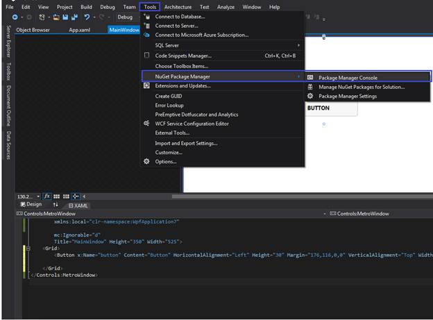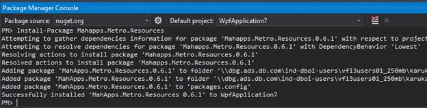 Step 3 We have to install the Icon Resource package for control customization using below command, because MahApps.Metro does not embed any Icons Package.