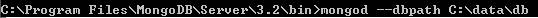 Now, execute mongod.exe with  	parameter --dbpath. Example - C:\Program Files\MongoDB\Server\3.2\bin>mongod.exe --dbpath  	C:\data\db