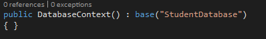 The parameter accepted by the constructor is our database name. If we are not making any constructor in DatabaseContext class, then the database name will be same as the class name that extends the DbContext class ( DatabaseContext in this case).