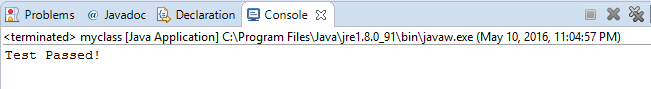 If you did everything correctly, Eclipse will output "Test Passed!"