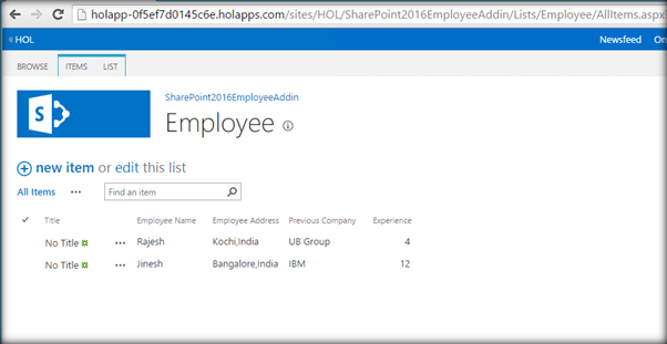 We will try to deploy a list as the SharePoint hosted add-in with some custom list items in it. Click on Add and select ‘New Item’.