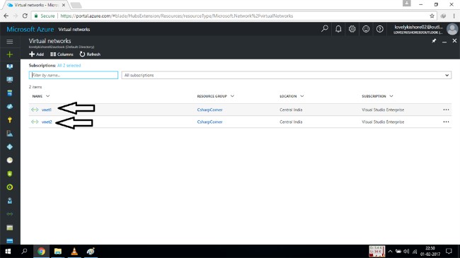 Be certain about the number of IP addresses you like to have in your site to site connection. The number of IP addresses range you have is the number of instances you can make. And the next step is to create two different virtual networks which you have already created. Once you finish creating two different VNets, click on the "All Resources" option in the left pane. This will display all the resources which you have created. Or go to the VNets option. You will be shown the new virtual networks you have created.