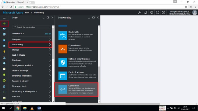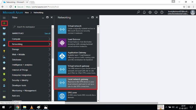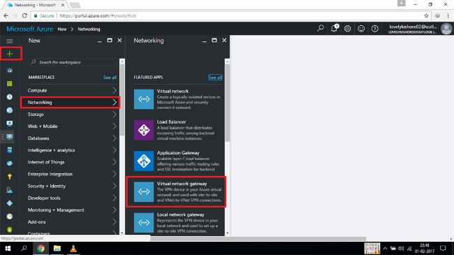 To do this, go to New >> Networking >> Virtual network gateway.