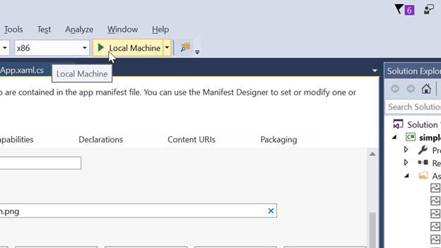 Move to Package.appxmanifest in Solution Explorer. Package.appxmanifest holds the properties of the deployment package for our app are available in this app manifest file. We can use the Manifest designer to set or modify one or more of the properties.