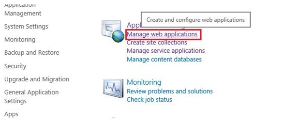 - Finally, go to Central Administration Website-> Application management ->Manage Web Aplication