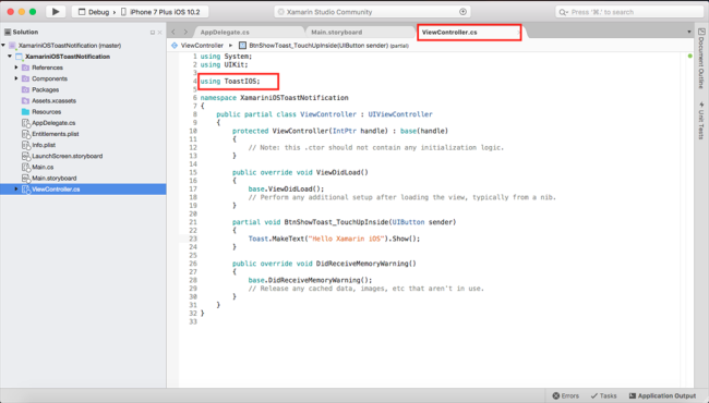 The steps given below are required to be followed in order to create Toast Notification in Xamarin iOS, using Xamarin Studio.
