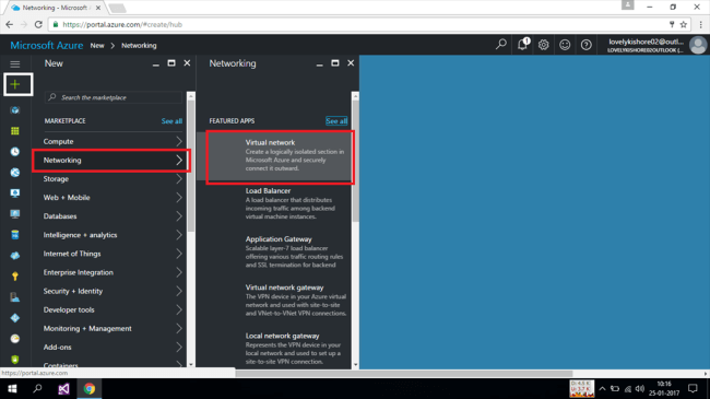 NEWàNetworkingàVirtual Network. Both will work in the same way. You can also search for the Virtual Network from the search box.