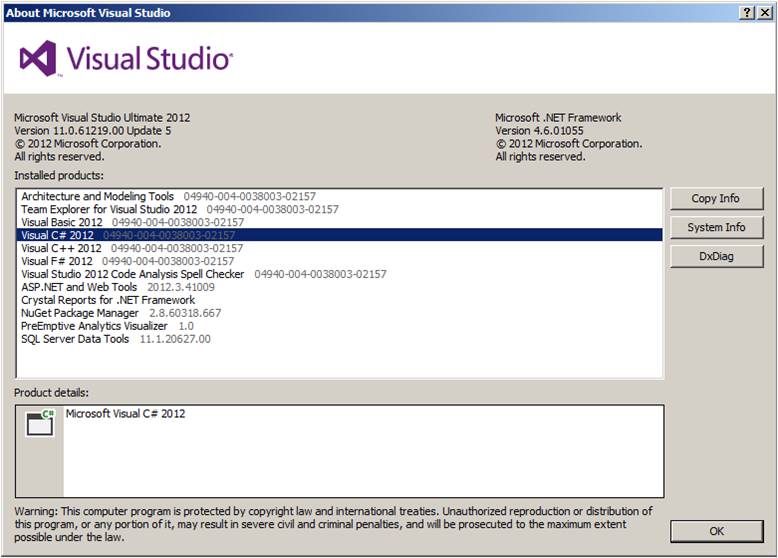 I have developed this application using Microsoft Visual Studio Ultimate 2012 with Microsoft SQL Server 2008 and the reporting is done using Crystal Report Version (13.0.5).