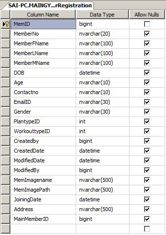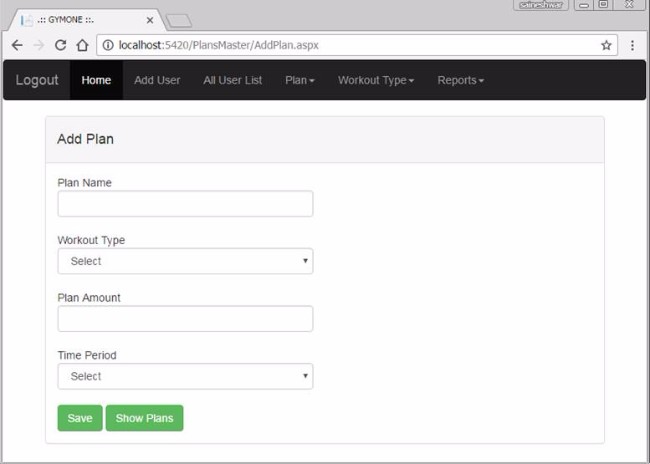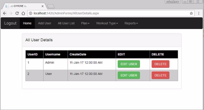 I have provided the entire GYM project to download with SQL Server Script that contains tables and stored procedures. Please read text file ReadMeBeforeStart.txt.